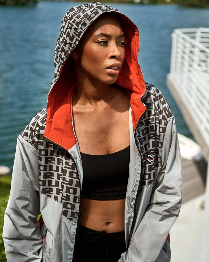 Contrast print hood with drawcord & metal tips