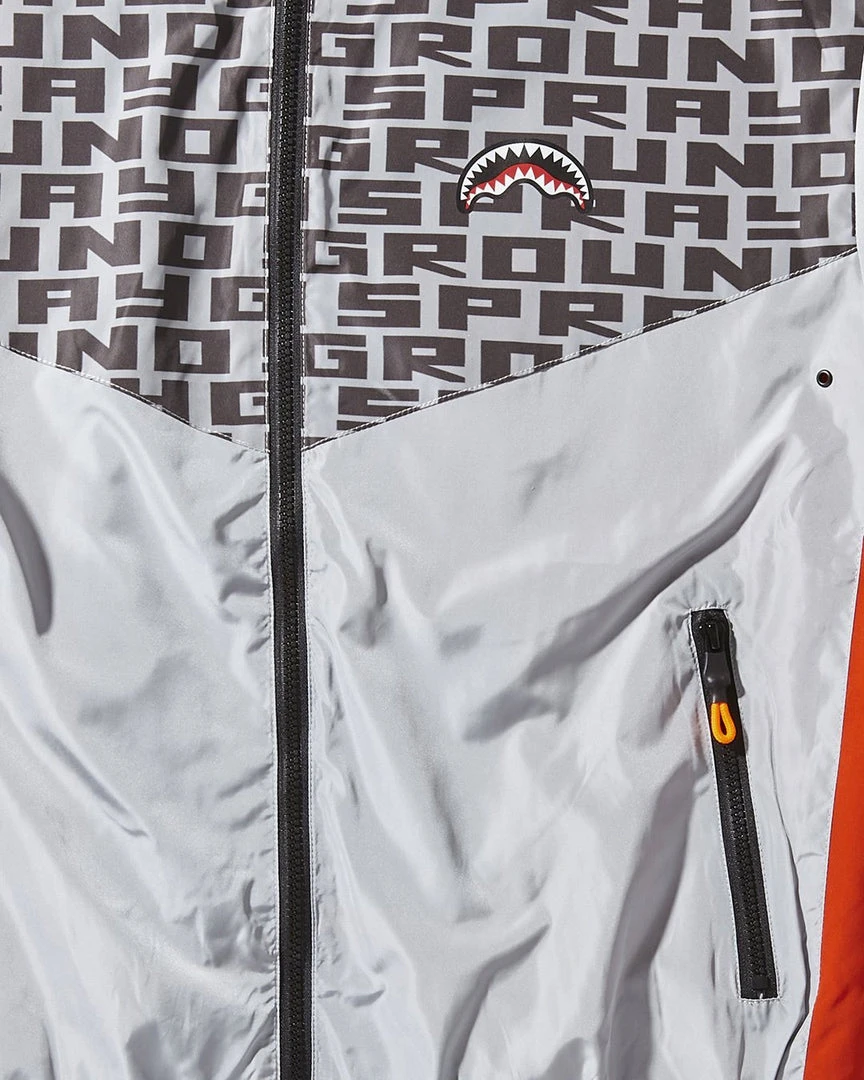 Shark mouth logo embroidery at wearer’s left front chest