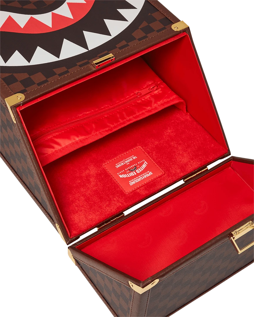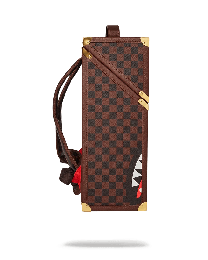This unique Backpack is an instant classic. Drawing inspiration from a boxy shaped backpack that travelers and hikers used to use as one of the earlier designs of backpacks in the early 1900’s. Reinforcing it with a wooden frame and checkered shark pattern and luxe interior design for the modern adventurer. I call it the CHATURANGA SHARK to pay homage to the first ever board game that featured a CHESS PATTERN invented in India called Chaturanga Board Game..which would evolve into the CHECKERED PATTERN we all love and know in Fashion.