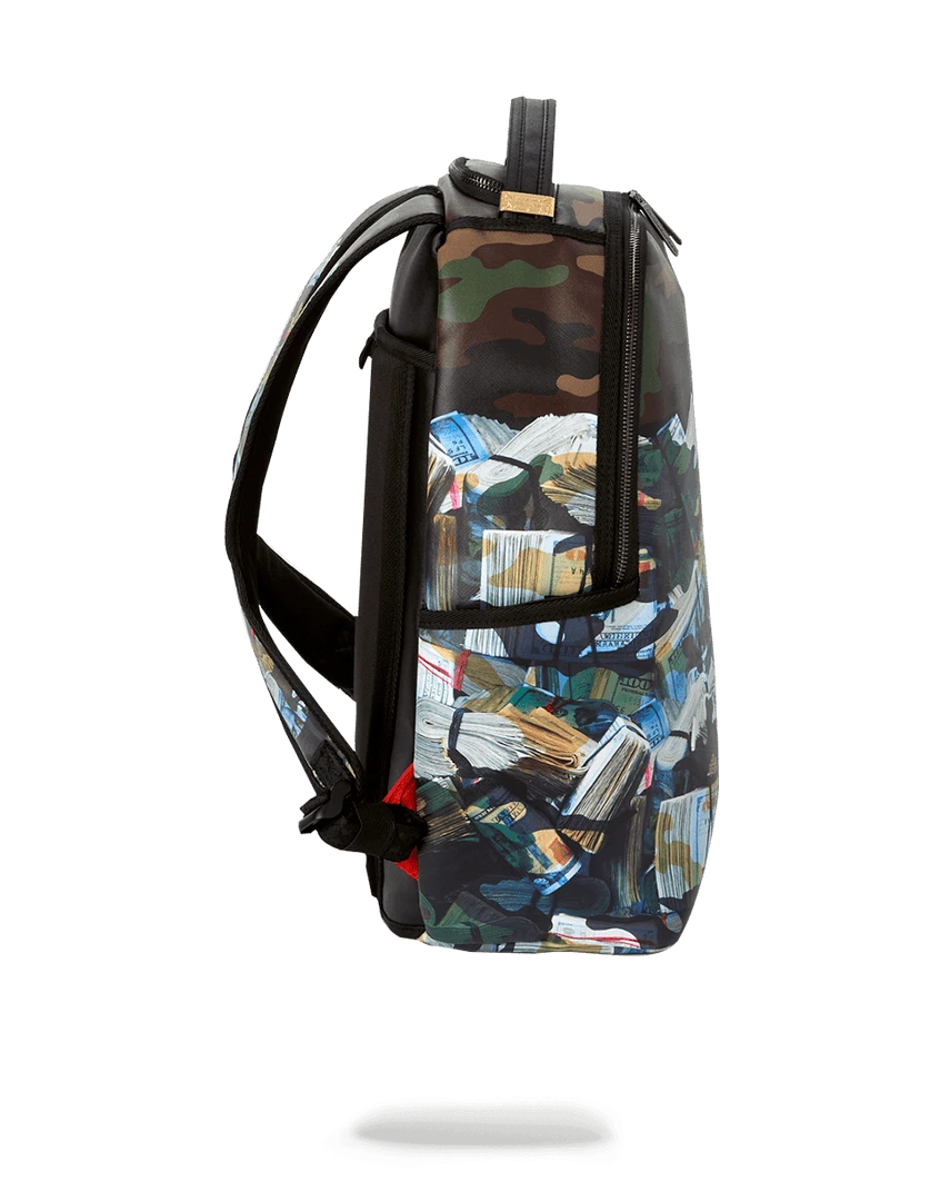 Dimensions: 18″ x 6″ x 11.5″ • Front zipper pocket • Side pockets • Zippered Stash pocket • Separate velour sunglass compartment • Ergonomic mesh back padding • Adjustable Straps for custom sizing • Gunmetal zippers with metal hardware • Metal “Sprayground Authentic” badge • Slide through back sleeve connects to carry-on luggage to free your hands