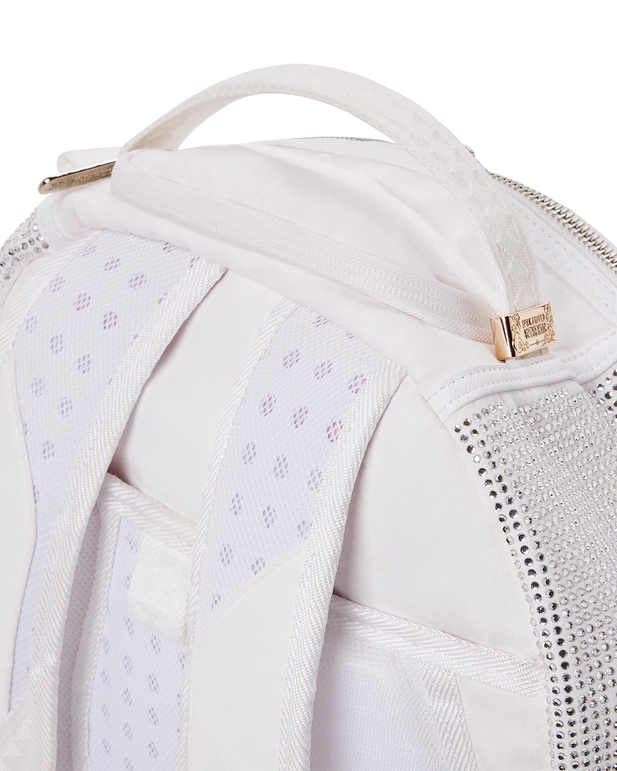 Dimensions: 18″ x 6″ x 11.5″ • Front zipper pocket • Side pockets • Zippered Stash pocket • Separate velour sunglass compartment • Ergonomic mesh back padding • Adjustable Straps for custom sizing • Gold zippers with metal hardware • Metal “Sprayground Authentic” badge • Slide through back sleeve connects to carry-on luggage to free your hands