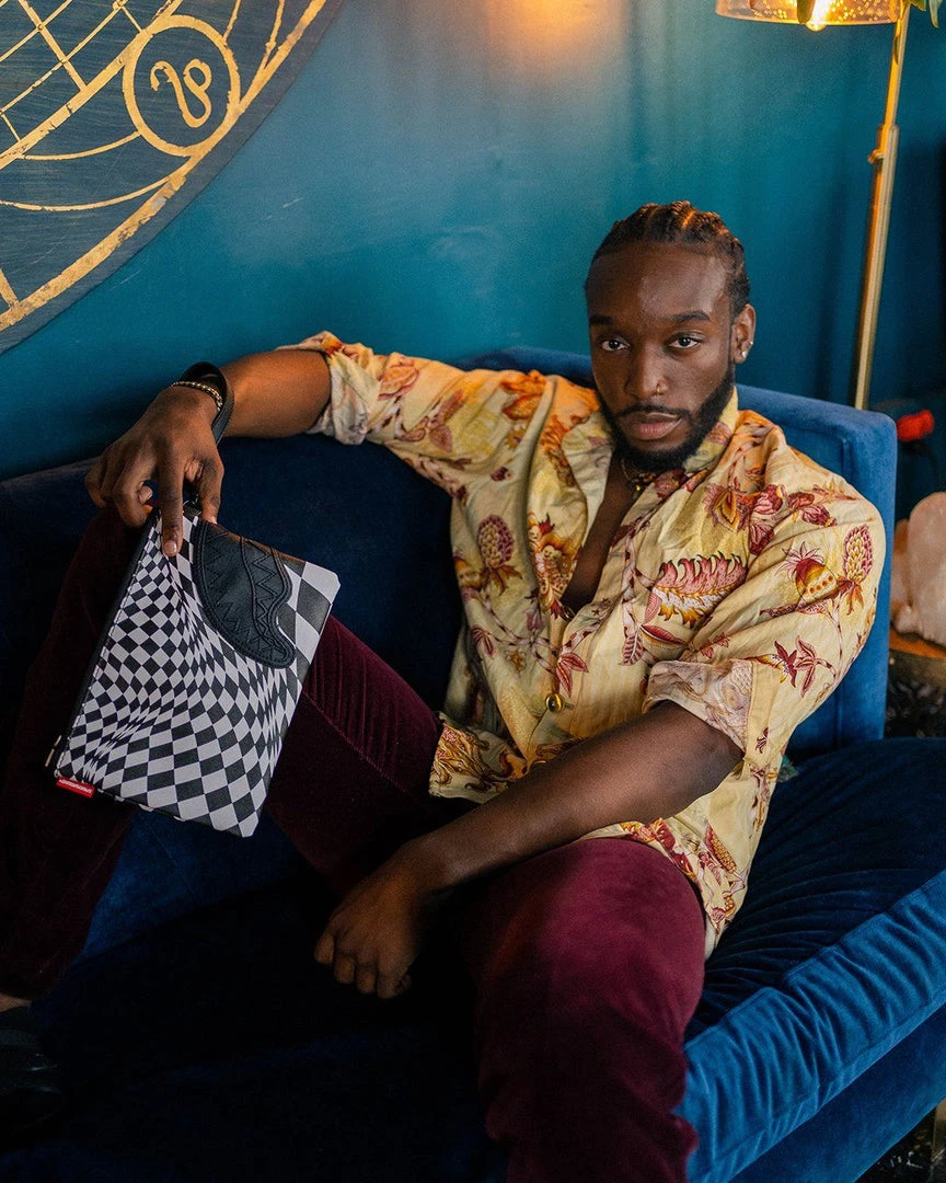 Convertible Clutch with removable wristlet strap, Handle on front panel, Zip Closure, secret stash pocket on side seam