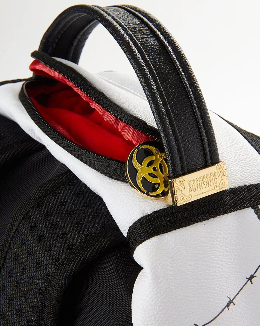Dimensions: 18″ x 6″ x 11.5″ • Front zipper pocket • Side pockets • Zippered Stash pocket • Separate velour sunglass compartment • Ergonomic mesh back padding • Adjustable Straps for custom sizing • Black zippers with metal hardware • Metal “Sprayground Authentic” badge • Slide through back sleeve connects to carry-on luggage to free your hands