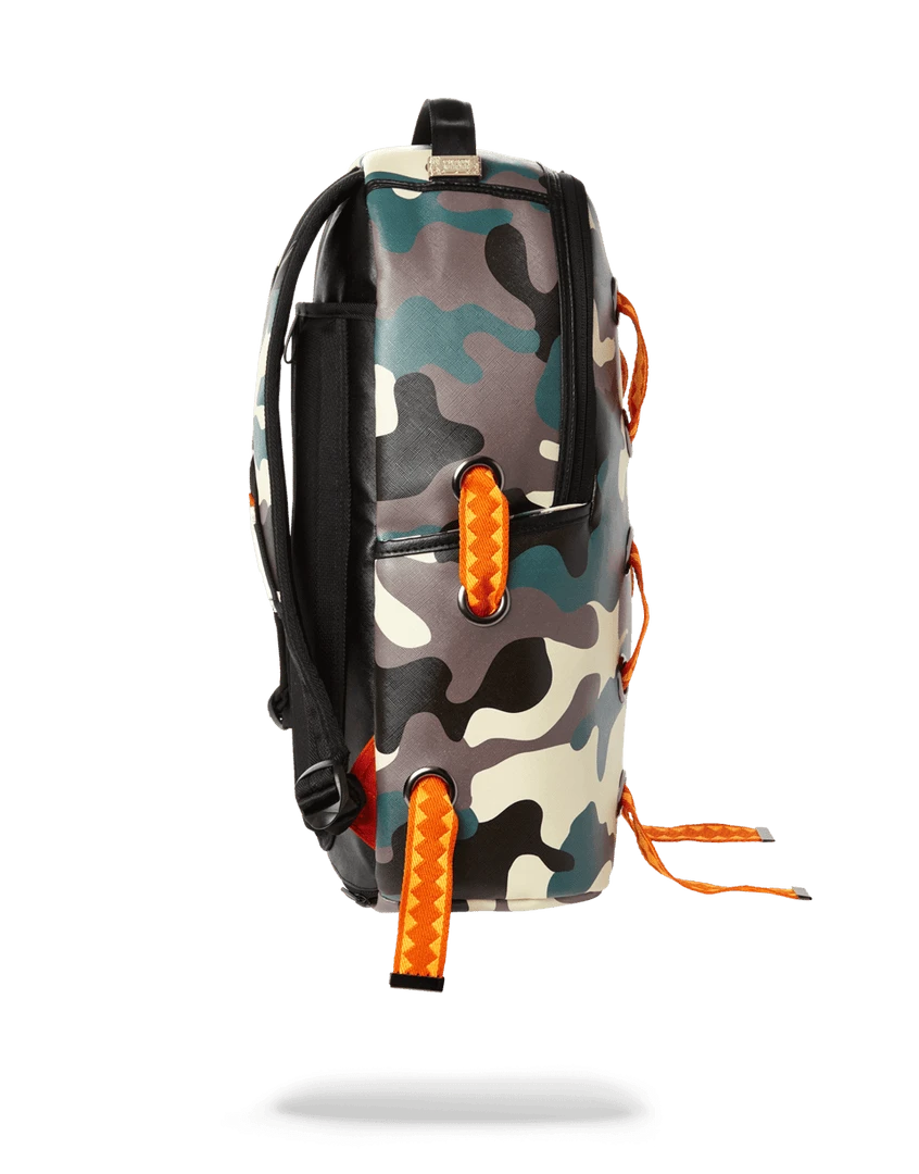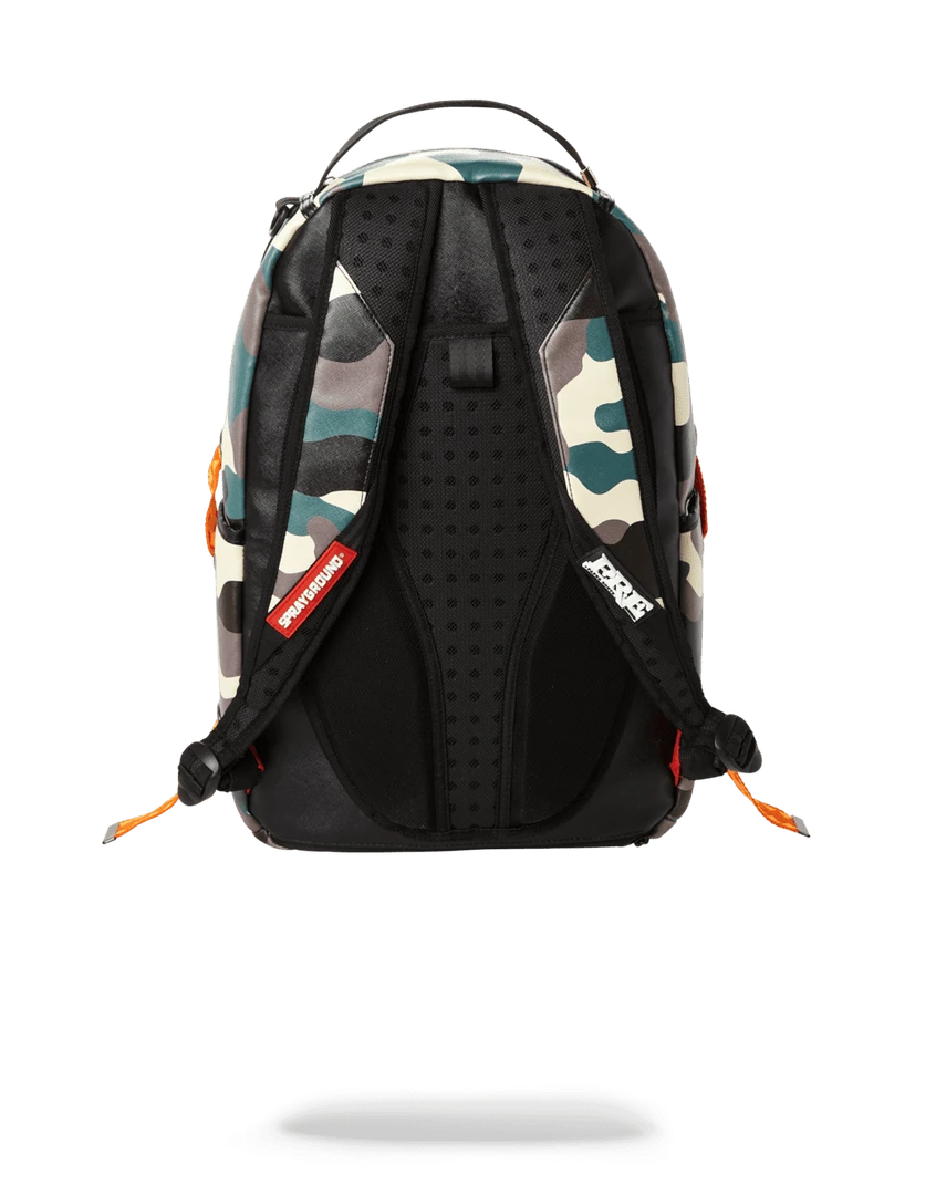 Dimensions: 18″ x 6″ x 11.5″ •Front zipper pocket • Side pockets • Zippered Stash pocket • Ergonomic mesh back padding• Adjustable Straps for custom sizing • Nylon Zippers with Metal Hardware • Metal “Sprayground Authentic” badge •Slide through back sleeve connects to Carry on luggage to free your hands