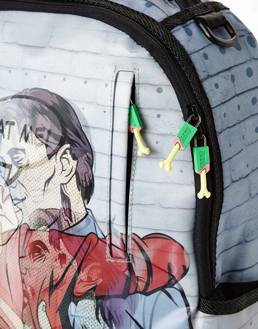 Dimensions: 18″ x 6″ x 11.5″ _ Front zipper pocket_ Side pockets _ Zippered Stash pocket _ Ergonomic mesh back padding _ Adjustable Straps for custom sizing _ Nylon Zippers with Metal Hardware _ Metal “Sprayground Authentic” badge _ Slide through back sleeve connects to Carry on luggage to free your hands